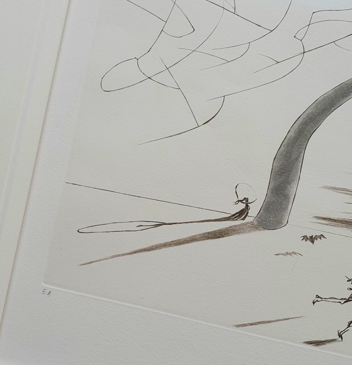 A stunning artist proof etching by Salvador Dali from the 'Aurelia' Suite. Signed in pencil and E.A (épreuve artiste) aside from the edition of 100 on Richard de Bas paper. Published by Editions d'art de Francony, Paris in 1972. Gallery standard frame and glass.Details