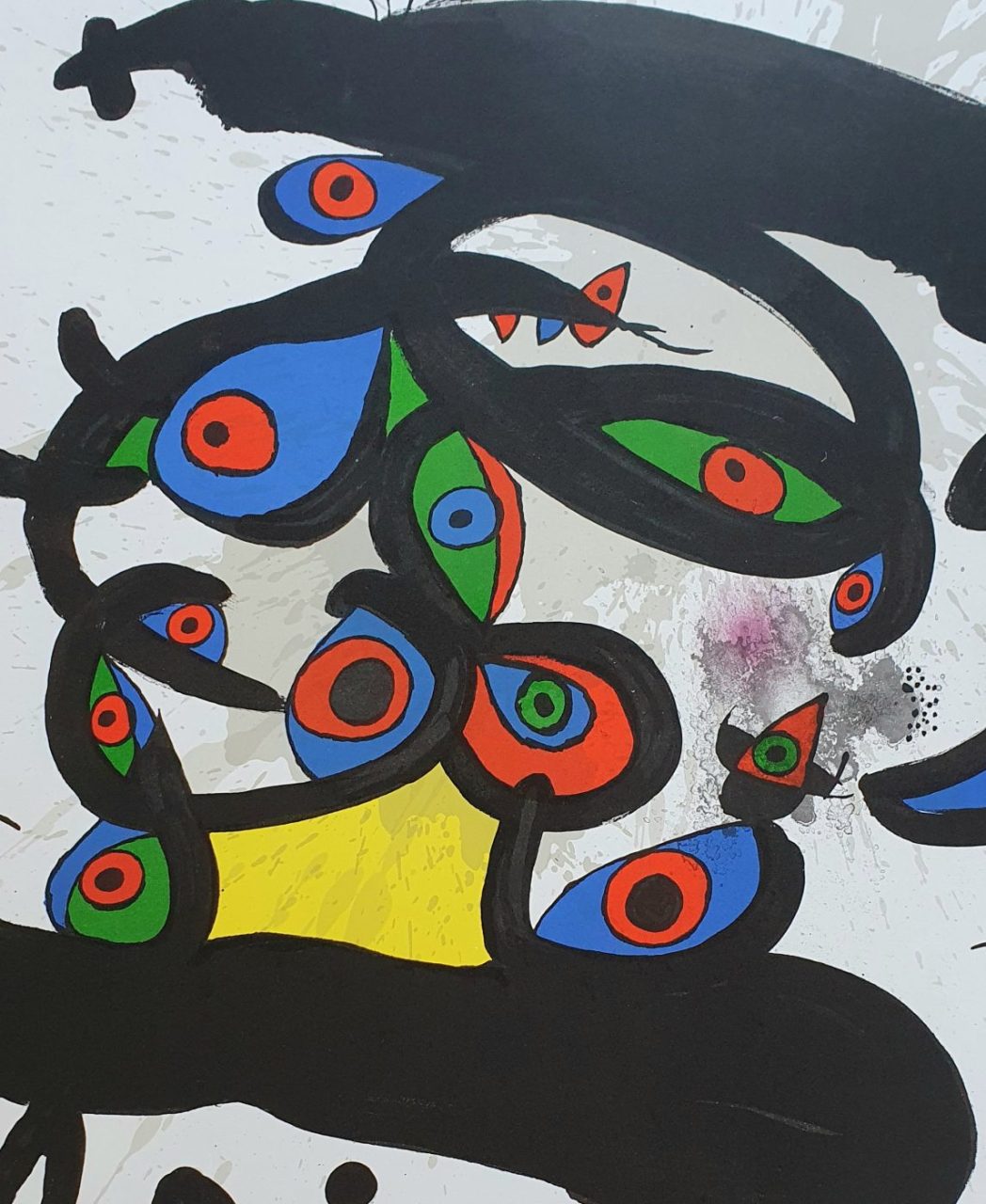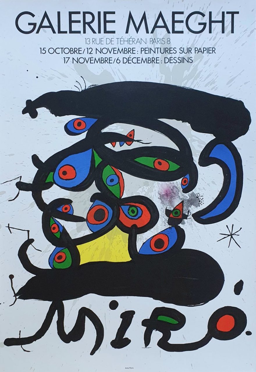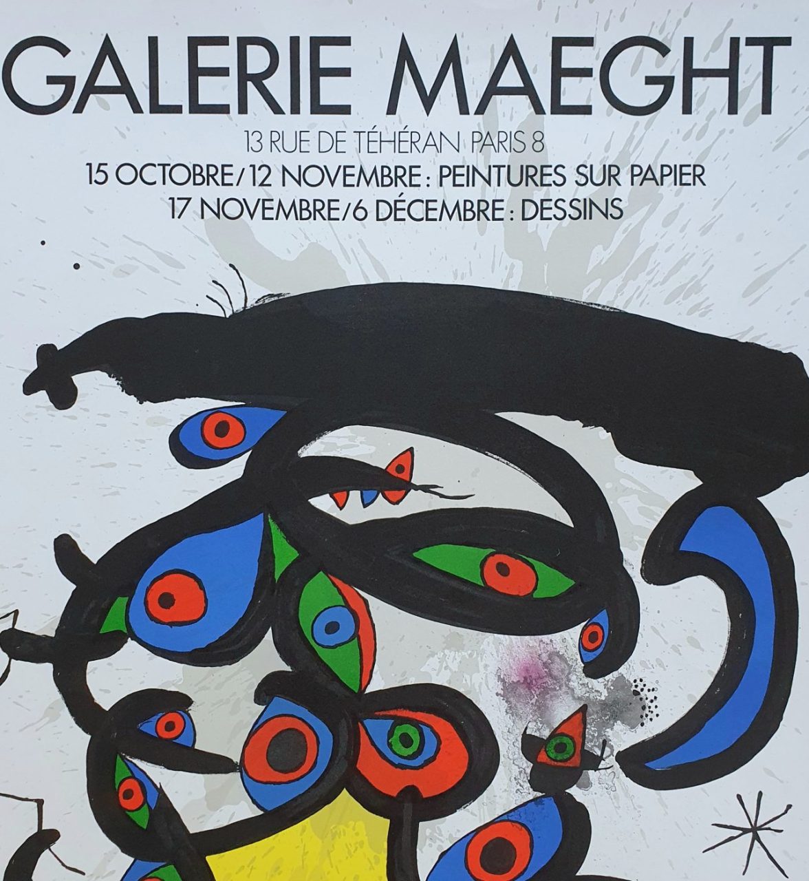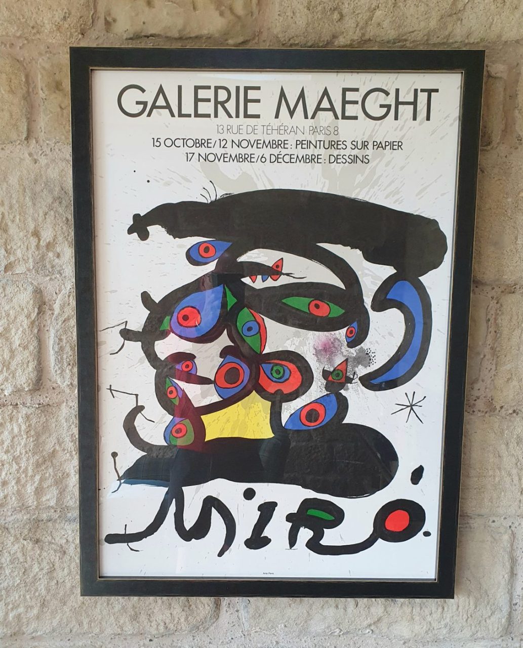 A striking vintage Miró exhibition poster. Published by Maeght Gallery, Paris, printed by Arte Paris. Modern black frame.Details